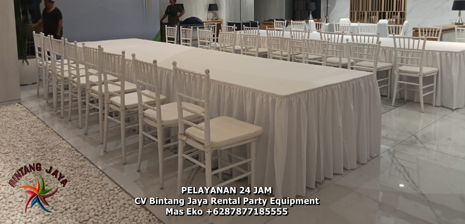 Merupakan salah satu produk jasa sewa dari CV Bintang Jaya yang memasarkan khusus untuk daerah se-Jabodetabek dan sekitarnya. kursi tersebut biasa nya sering digunakan untuk event organizer atau pun bisa juga untuk keperluan acara yang bersifat pribadi seperti perayaan ulang tahun dan sebagainya. kenapa harus menggunakan jasa sewa milik CV Bintang Jaya? karena selain berkualitas dan sangat berpengalaman di bidang jasa penyewaan ini.