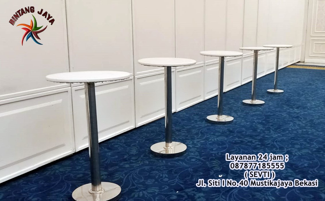 Meja bar milik kami ini ialah berkualitas baik dari bahan dasar nya nan desain nya,alat yang satu ini bisa di setting ukuran tinggi mupun pendek sesuai dengan keinginan anda. Benda ini sangat cocok untuk sebuah pesta seperti Wedding,Nonton bareng dan juga untuk acara keluarga,anda bisa memesan alat ini di bintang jaya dengan per item maupun juga bisa di pesan dengan sistem borongan,akan ada harga potongan untuk anda tentunya dengan memesan slot yang melimpah.