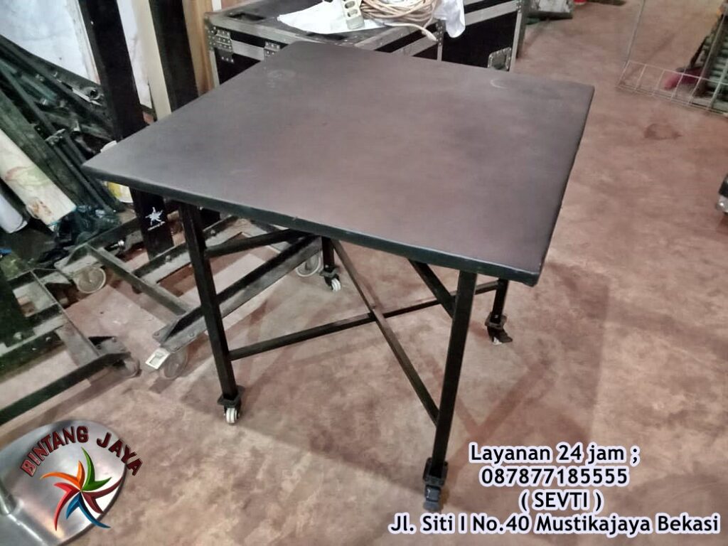 Untuk bahan dan juga material anda bisa lihat sendiri gambar di atas,meja ini memiliki bahan yang kuat dan juga berkualitas untuk papan meja menggunakan kayu mahoni yang di dukung oleh rangka besi yang menyilang ke kaki tiang meja serta pula di lengkapi dengan role roda di bagian kaki meja,yang kegunaanya untuk memudahkan dan mendorong meja untuk membawa kue ulang tahun. Meja mini di produksi dengan penanganan yang tepat sehingga menciptakan meja yang bermutu tinggi.