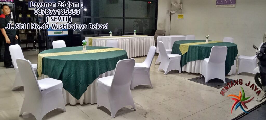 Gudangnya Meja Bulat Perayaan Skriting Hijau Periuk Tangerang - Kami dari bintang jaya hadir dengan perlengkapan lengkap untuk semua kebutuhan pesta yang anda,yang menghadirkan tata ruang yang elegan yang di lengkapi dengan dekorasi sesuai dengan apa yang anda inginkan atau custom,untuk alat dan juga furniture di BJ berkualitas semua baik dari segi apapun,yang kami siap kirimkan dengan super cepat ke kota kota terdekat anda.
