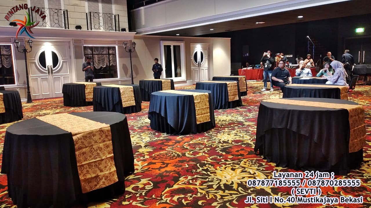 Jasa Sewa Round Table Runner Batik Tebar Hitam Bukber 2024 Bekasi