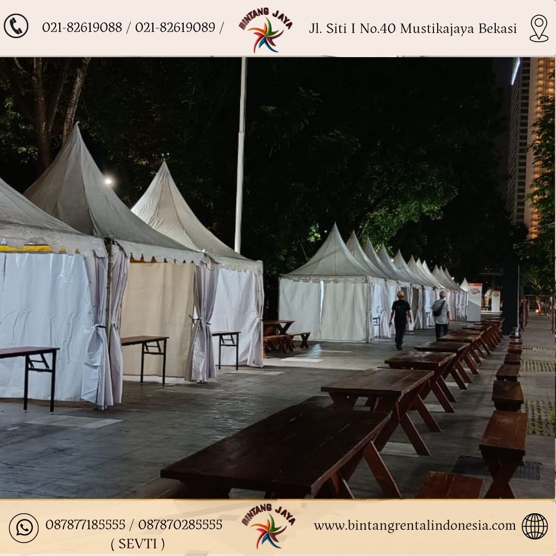 Selamat datang warga depok di website jasa event organizer yang bernama bintang jaya rental indonesia yang menyediakan berbagai macam tenda event dan juga peralatan / furnitur event maupun pesta yang terlengkap di jabodetabek. Untuk kesempatan ini kami menyediakan Sewa Tenda Event Kerucut Area Masjid Kubah Emas Depok Kota yang untuk semua jenis kegiatan di outdoor seperti booth pameran produk,tenda jualan,tenda bazar dan untuk semua kegiatan lain nya.