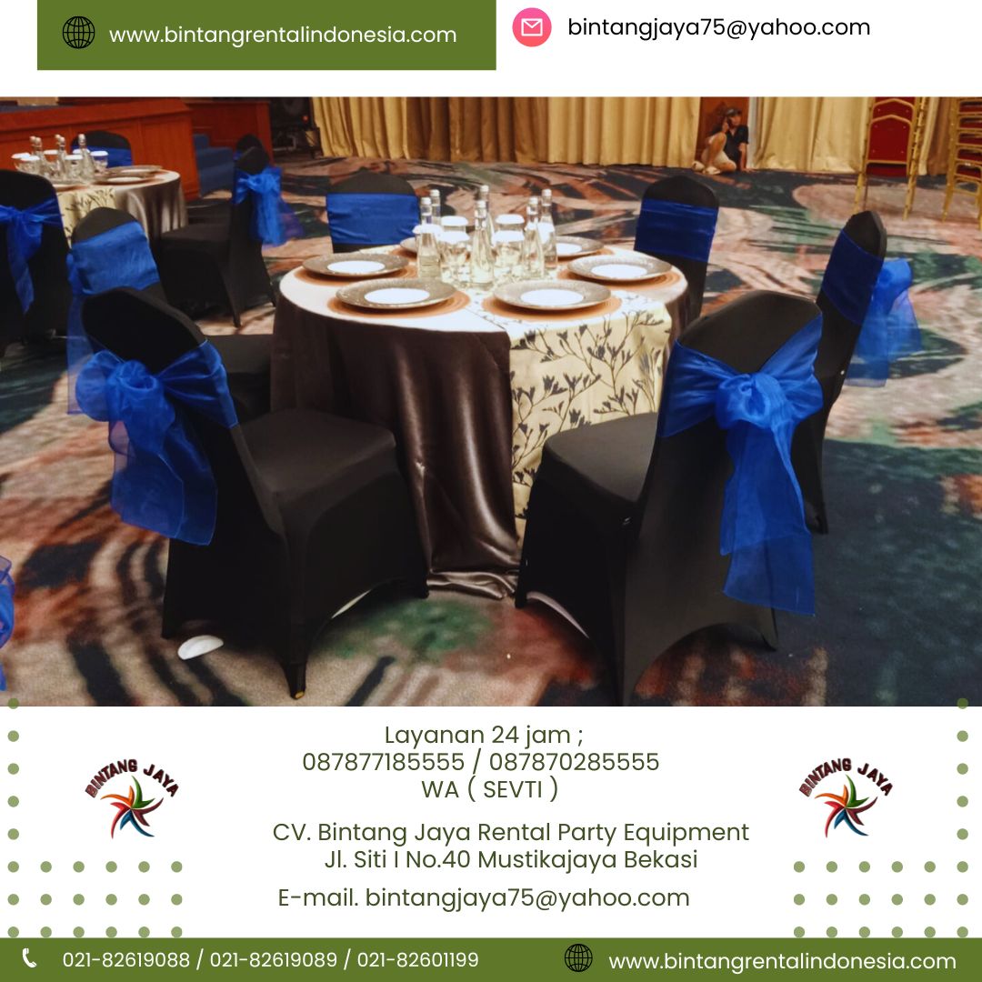 Selamat datang di pusat website Sewa Cover Kursi Stretch Hitam Dan Meja Bundar Jakarta. Yang kami tawarkan kepada anda dengan harga paling terjangkau di kota jakarta dan juga jabodetabek. Kursi tamu dan juga meja tamu tipe bundar ini siap kirim ke alamat anda dengan kapasitas melimpah. Dan juga siap setting dengan formasi rapi nan mewah untuk memeriah kan acara anda agar berkesan. Untuk pengiriman kami siap kirim cepat ke sleuruh kota di wilayah jabodetabek dan juga provinsi jawa barat.