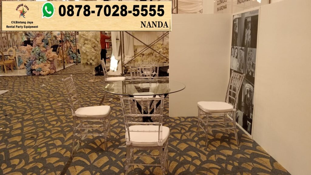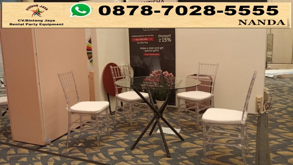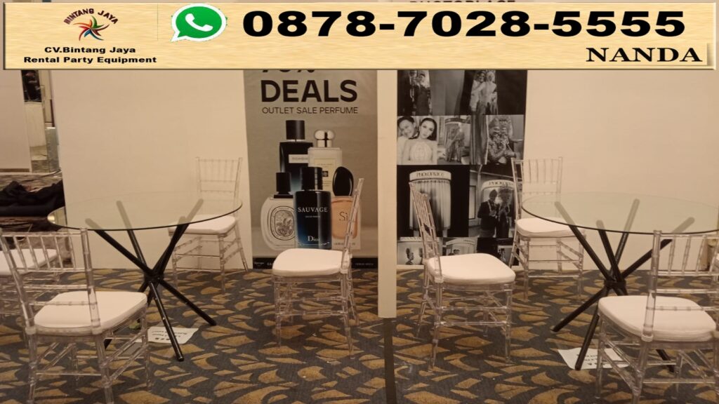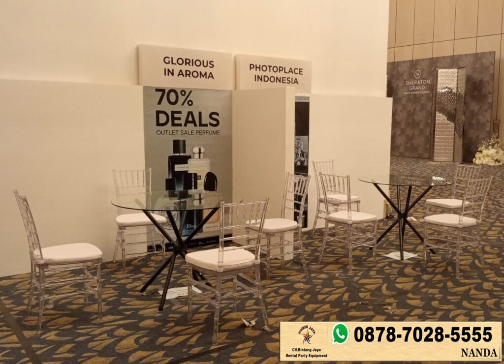 Sewa meja dealing kaca set kursi tyffany acrylic event hotel sheraton. Salah satu pilihan yang semakin populer adalah sewa meja dealing kaca dan set kursi tyffany acrylic. Kombinasi ini tidak hanya menawarkan estetika yang elegan tetapi juga fungsionalitas yang tinggi, menjadikannya pilihan ideal untuk event di Hotel Sheraton.