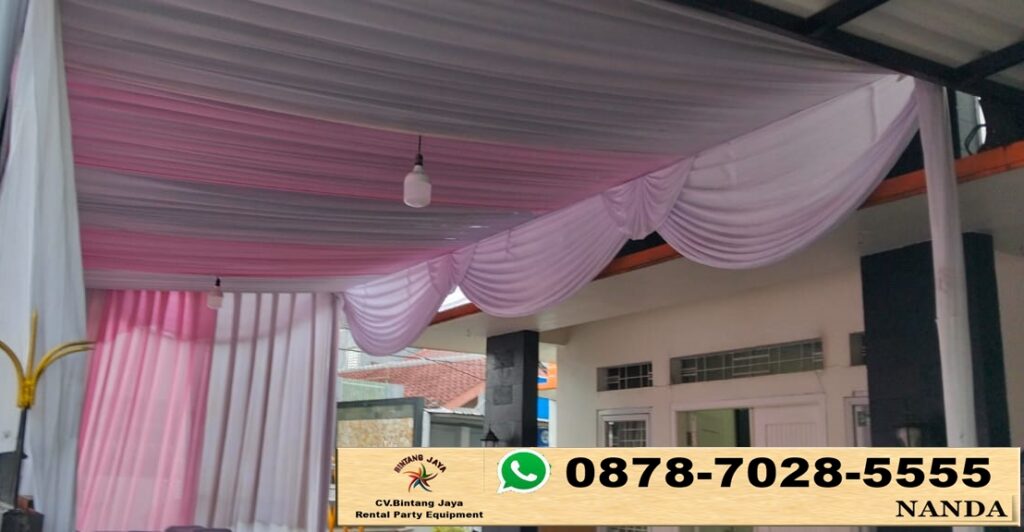 SEWA TENDA DEKORASI KAIN REMPEL SERUT PUTIH PINK DI JAKARTA