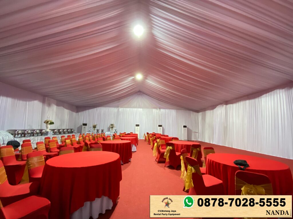 Sewa tenda dekorasi kain rempel serut putih pink di Jakarta. Layanan sewa tenda dekorasi kain rempel serut putih pink bisa menjadi pilihan yang sempurna untuk menambah keindahan dan suasana acara anda. Dengan kombinasi warna yang elegan, tenda ini tidak hanya berfungsi sebagai pelindung dari cuaca, tetapi juga sebagai elemen dekoratif yang menarik.