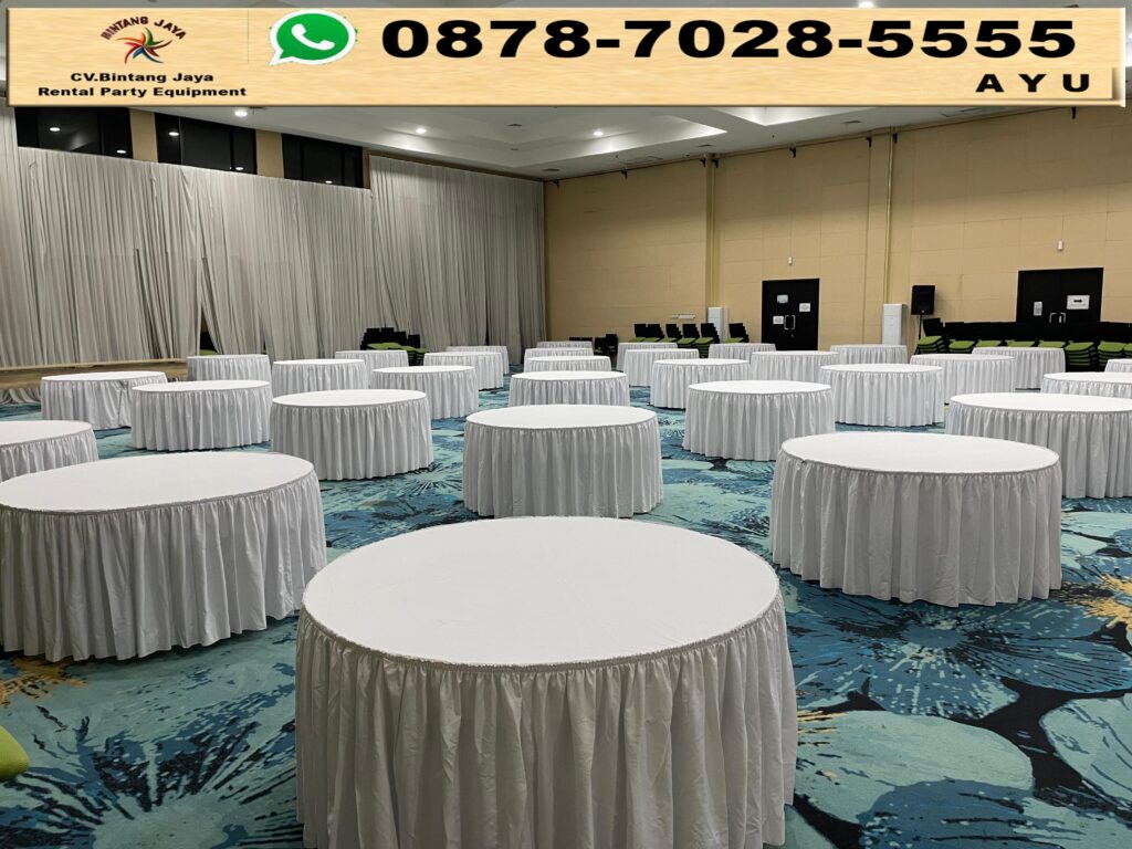 SEWA KURSI DAN MEJA BUNDAR SKIRTING PUTIH DI JAKARTA