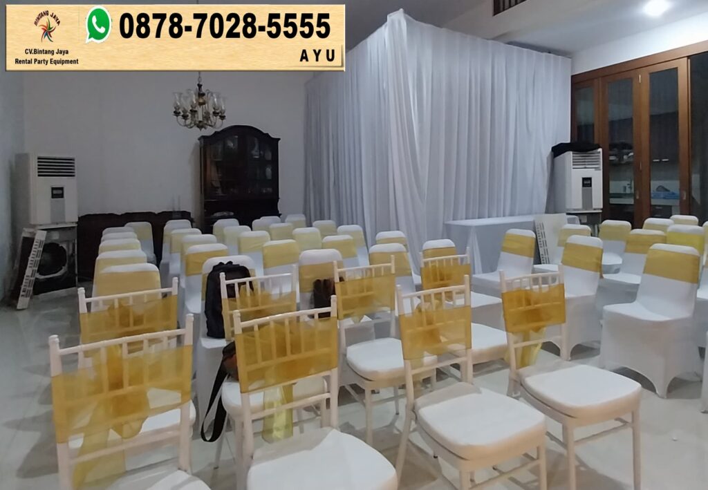 Rental kursi tiffany warna putih kerangka kayu di Bogor. Jasa sewa kursi tiffany warna putih dengan kerangka kayu adalah pilihan yang tepat untuk menambahkan sentuhan elegan pada acara anda. Kursi ini tidak hanya nyaman, tetapi juga memberikan kesan mewah yang dapat meningkatkan suasana acara.