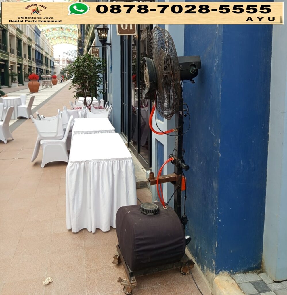 Rental misty fan kipas uap air hemat daya Jakarta. Misty fan atau kipas uap air adalah solusi ideal untuk menghadapi cuaca panas di Jakarta. Dengan teknologi yang canggih, kipas ini tidak hanya memberikan kesejukan, tetapi juga meningkatkan kelembapan udara, sehingga membuat suasana lebih nyaman. Bagi anda yang membutuhkan kipas ini tanpa harus membelinya, rental sewa misty fan menjadi pilihan yang tepat.