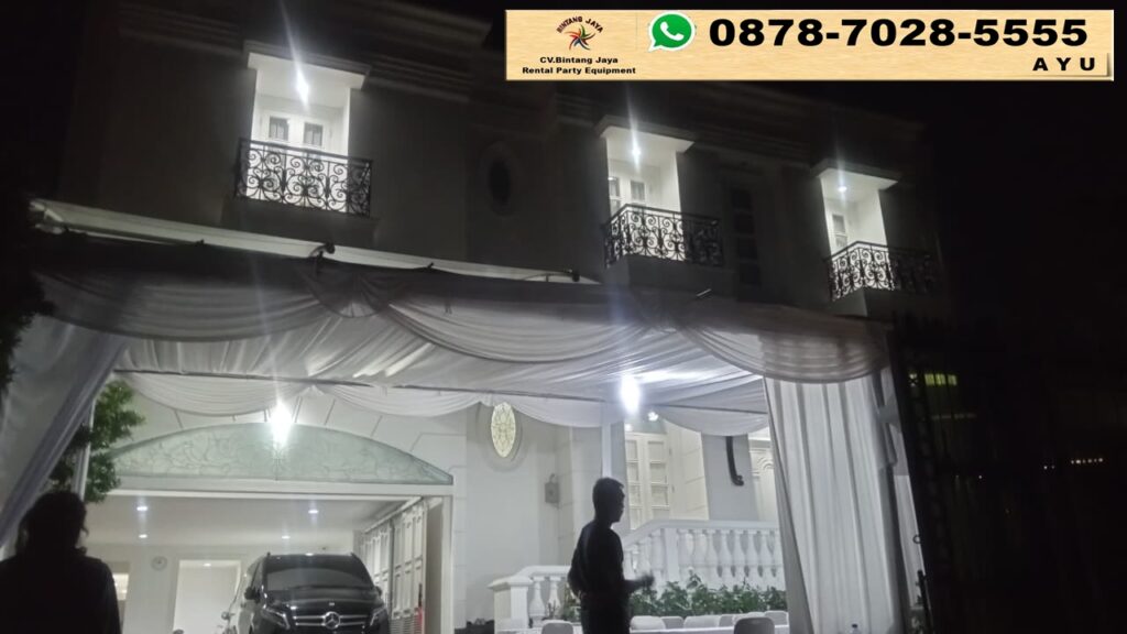 Sewa tenda serut putih beserta panggung dan meja kursi Jakarta. Dengan berbagai pilihan alat pesta yang lengkap, harga yang terjangkau, dan pelayanan yang profesional, Bintang Jaya adalah pilihan tepat untuk kebutuhan sewa alat pesta anda. Hubungi kami sekarang untuk mendapatkan penawaran terbaik dan mulai rencanakan acara impian anda.