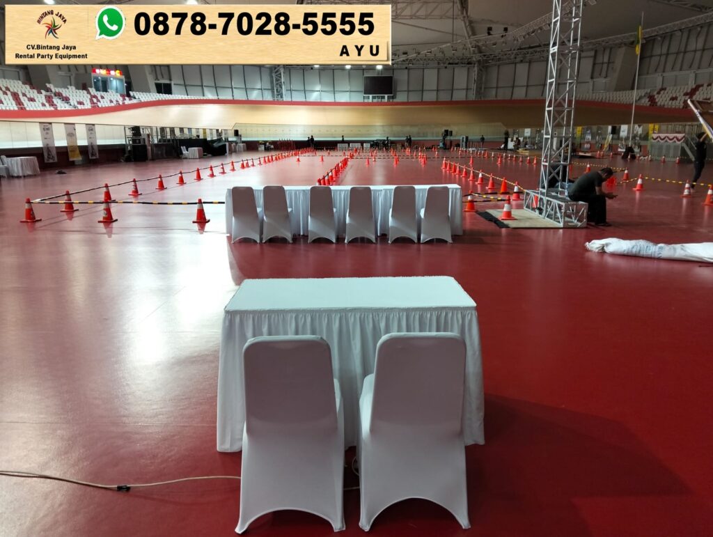 Cover merah putih tidak hanya memberikan kesan yang ceria, tetapi juga mencerminkan kebanggaan akan budaya dan identitas Indonesia. Meja kotak yang disewakan dilengkapi dengan bahan berkualitas tinggi, sehingga memberikan tampilan yang rapi dan profesional.