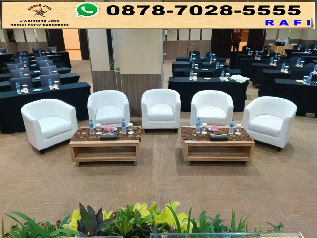 Sewa sofa type oval putih set meja retro Jakarta. Produk sewa sofa type oval putih set meja kini menjadi pilihan favorit bagi banyak orang yang ingin mempercantik ruang tamu atau acara spesial. Sofa oval putih tidak hanya memberikan kesan elegan, tetapi juga memberikan kenyamanan bagi siapa saja yang duduk di atasnya.
