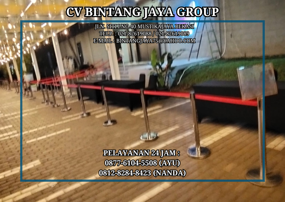 Rental sewa rope stand pita merah bogor dengan jumlah yang melimpah kami sediakan semua. Rope stand atau tiang antrian biasanya dipakai pada acara acara resmi guna untuk menjaga stand tetap rapi sesuai jalur. Tiang antrian juga berfungsi banyak hal, seperti buat garis tertentu agar tidak lewat secara sembarangan. Produk satu ini lebih dominan untuk acara acara resmi, karna keguna'annya yang sangat signifikan tiang antrian yang bahan material pembuatan nya ini dari besi stainless terbaik, mengkilap, dan tidak mudah berkarat kami sewakan dengan harga yang murah, namun kualitas pasti bermutu terjamin.