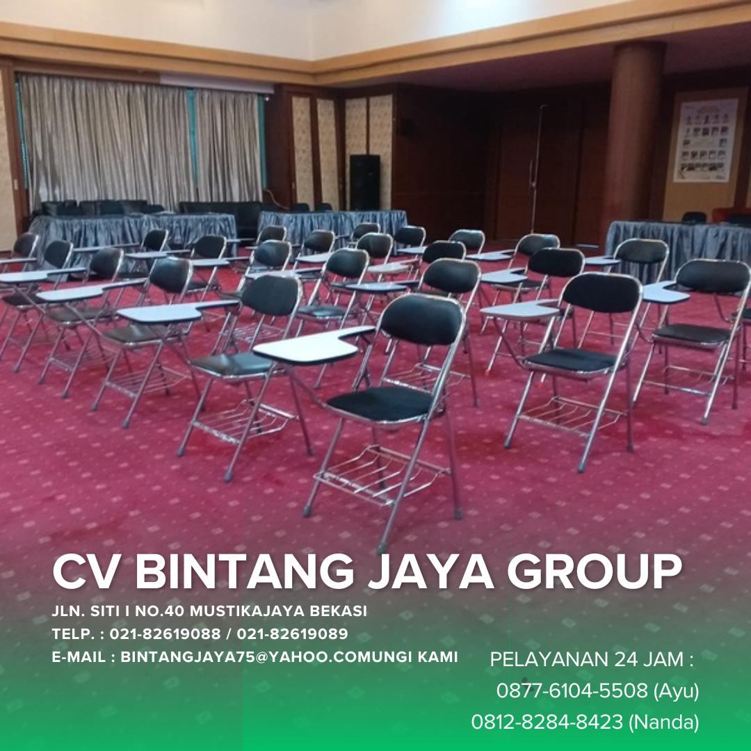 Kursi ini biasanya dipakai pada acara acara edukatif, pelatihan kerja, pembelajaran kursus ataupun kegiatan lainnya yang bersifat formal. Kursi ini nyaman saat dipakai karna ada busa yang tebal, empuk ditempat dudukan dan tempat senderan kursi itu sendiri, harga sewa nya pun relatief murah yah.
