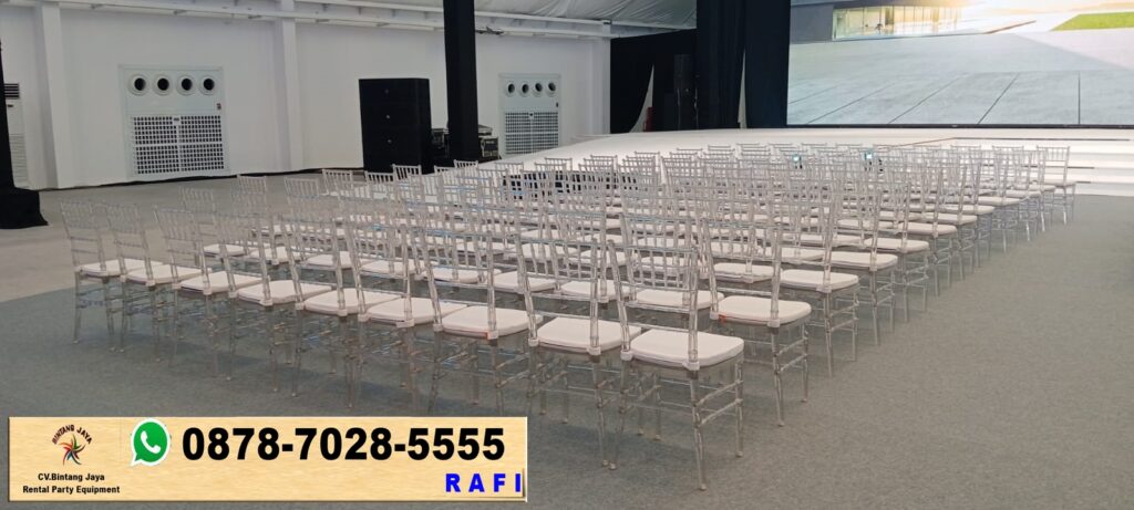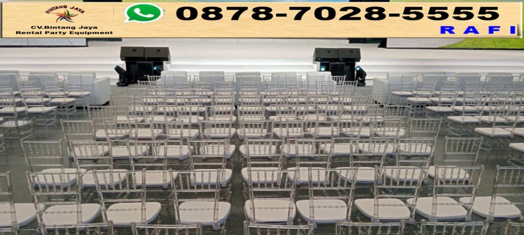 Rental meja kaca VIP kotak dan kursi tiffany acrylic Jakarta. Temukan berbagai jenis alat pesta, mulai dari tenda, kursi, meja, hingga dekorasi yang menarik hanya di Bintang Jaya. Semua alat disediakan dalam kondisi terbaik untuk memastikan kenyamanan dan kepuasan anda. Salah satu alasan mengapa Bintang Jaya menjadi favorit adalah harga sewa yang kompetitif.